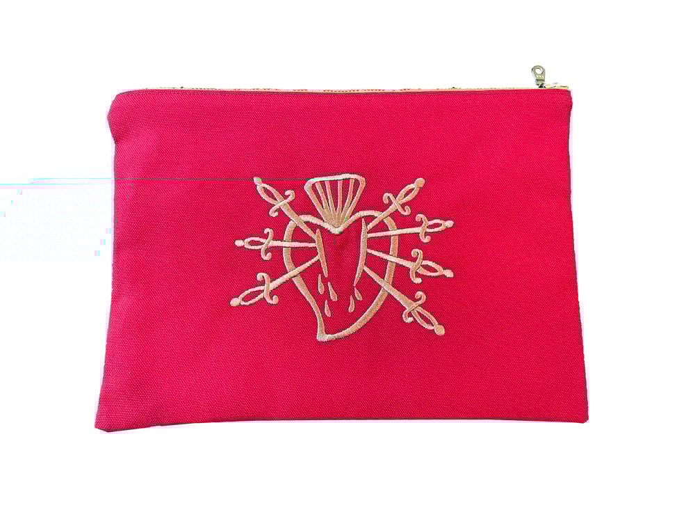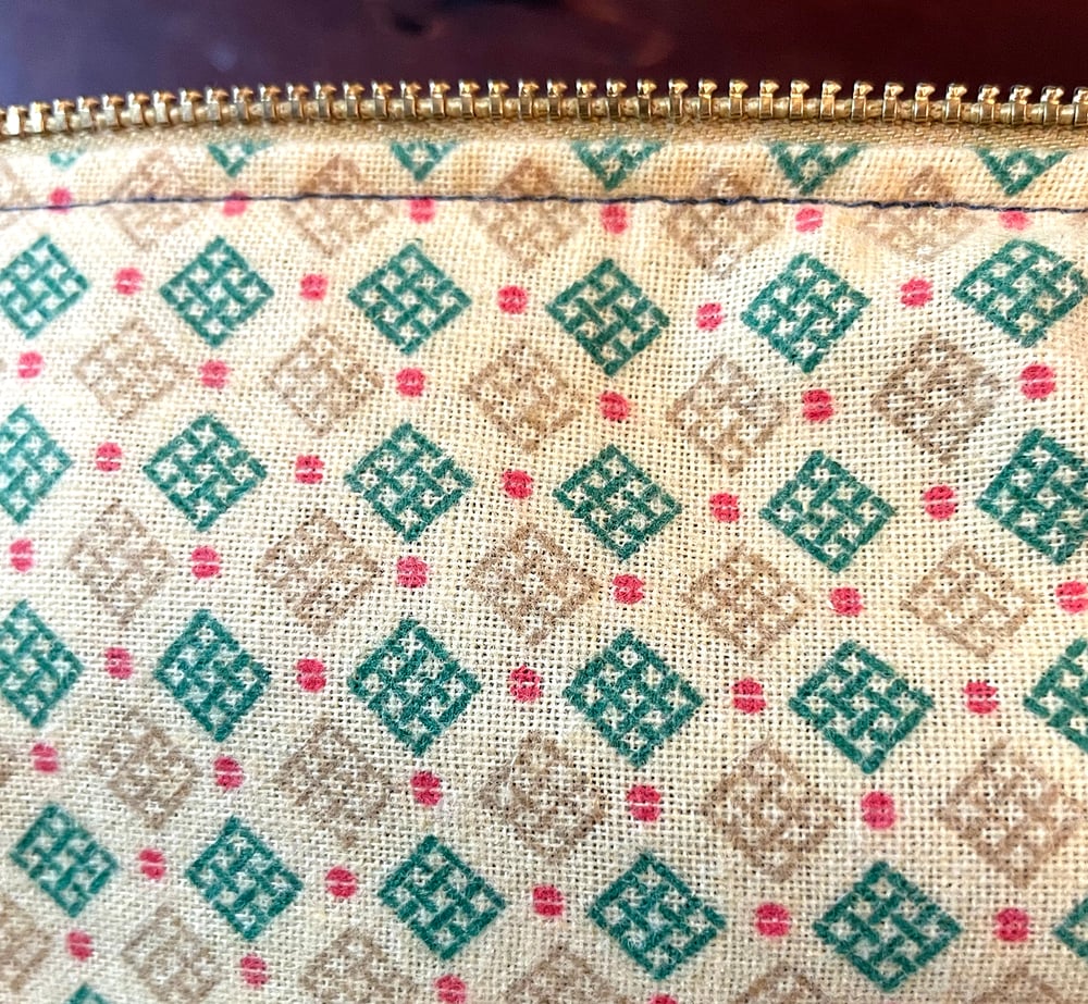 Embroidered handmade cotton pouch with brass YKK zipper.